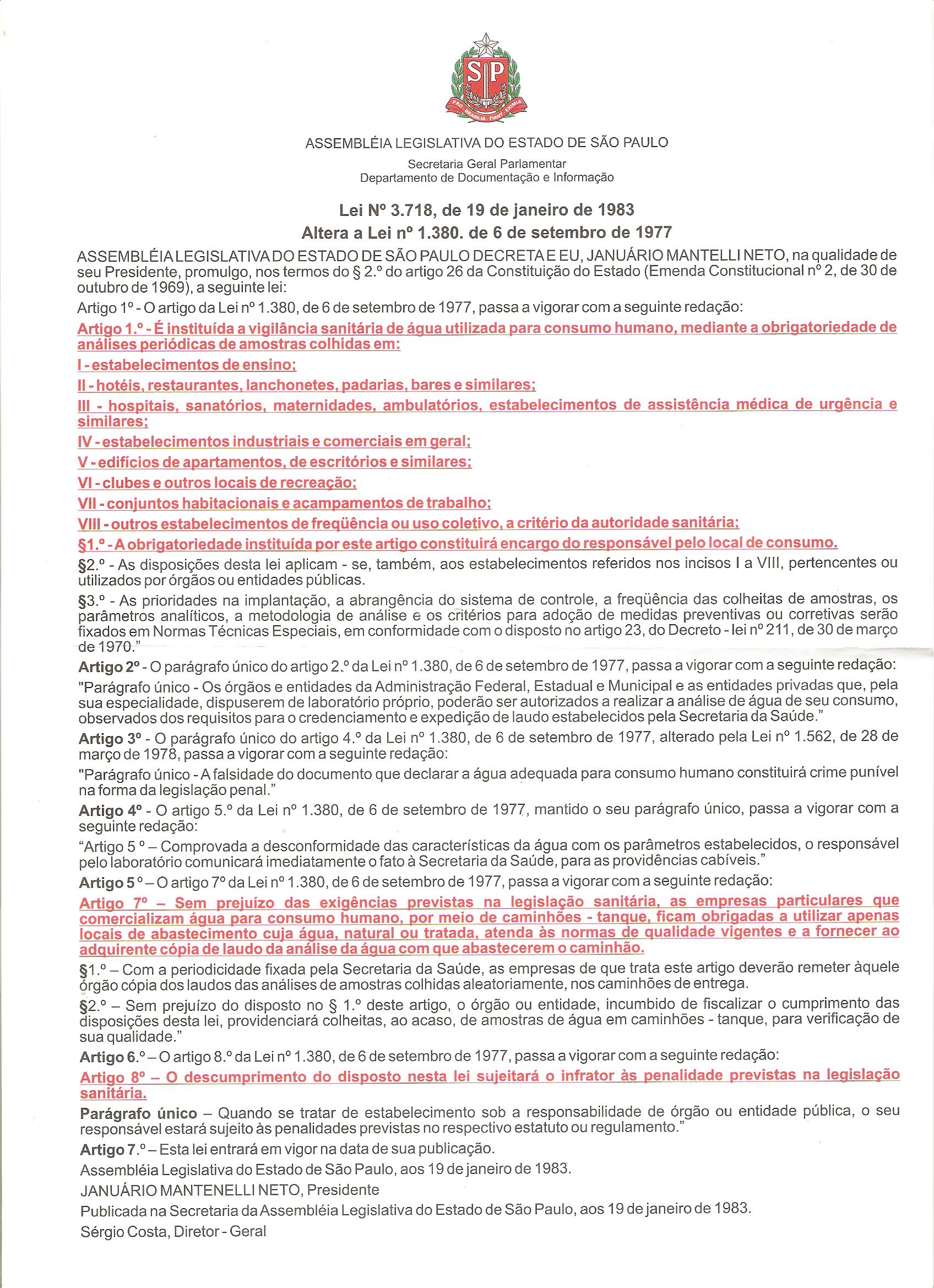 LEI ESTADUAL Nº 3.718, DE 19 DE JANEIRO DE 1977